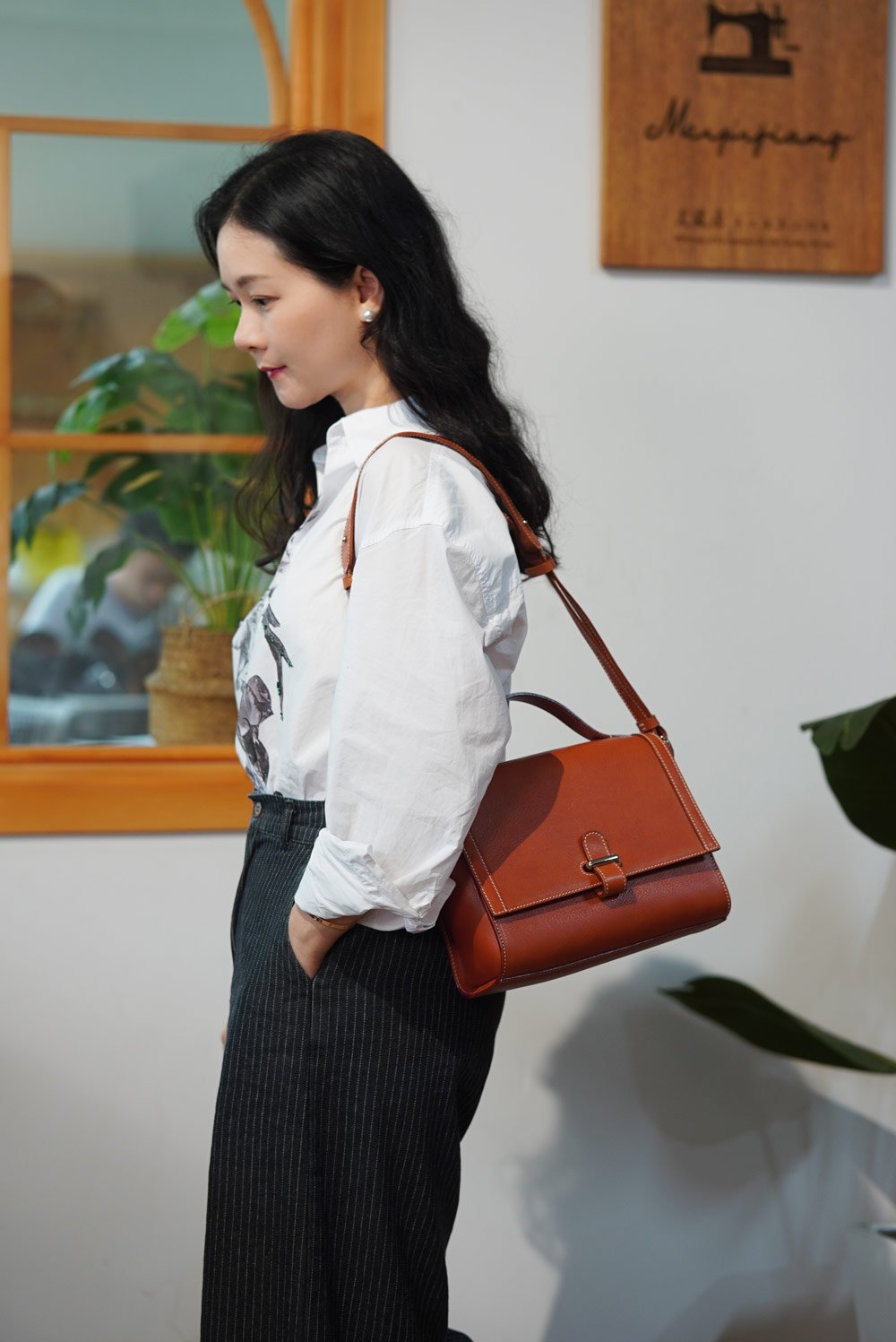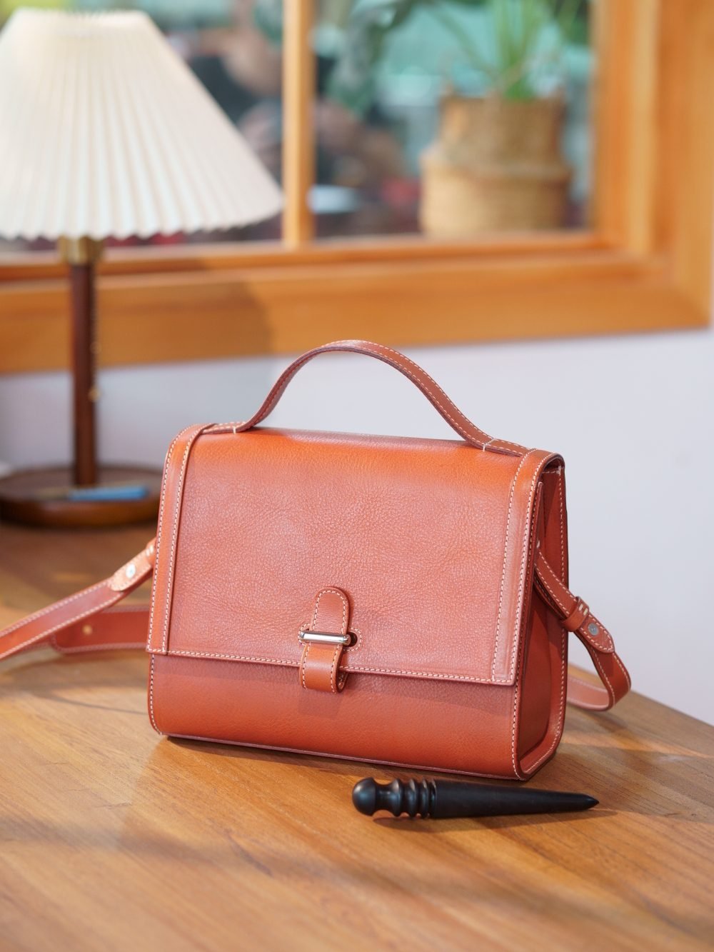 Made from vegetable-tanned leather with a timeless feel,  this bag is Briefcase will become more lustrous with time. Treated with special techniques, the leather surface features natural and irregular textures, signifying traces of time. The hardware draws inspiration from the book clasps found in the book bags of wandering monks, utilizing a jewelry-grade vacuum-electroplated manufacturing process that imparts a vintage feel. The buckles open and close in a second, offering convenience and security.